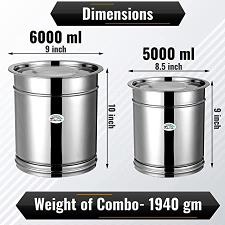 Package Contents: -2 Piece Stainless Steel Pawali. Dimension: (9x9x10 Inch- 6 Kg) & (8.5×8.5×9-5 Kg)